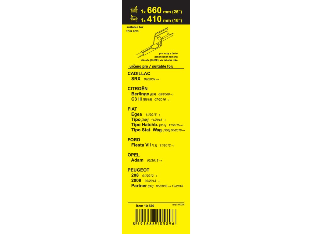 Sada dvou plochých stěračů FLAT (řidič + spolujezdec) se speciálním uchycením. Délky stěračů a systém uchycení na ramínko jsou přizpůsobeny vybraným vozům (viz tabulka použití).