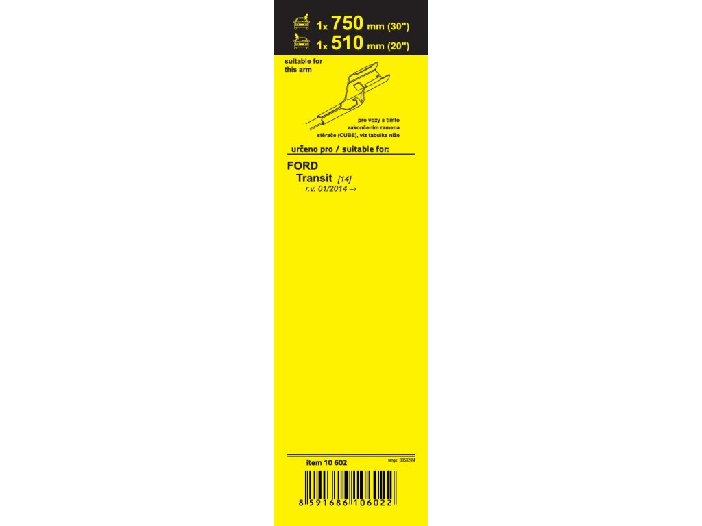 Sada dvou plochých stěračů FLAT (řidič + spolujezdec) se speciálním uchycením. Délky stěračů a systém uchycení na ramínko jsou přizpůsobeny vybraným vozům (viz tabulka použití).