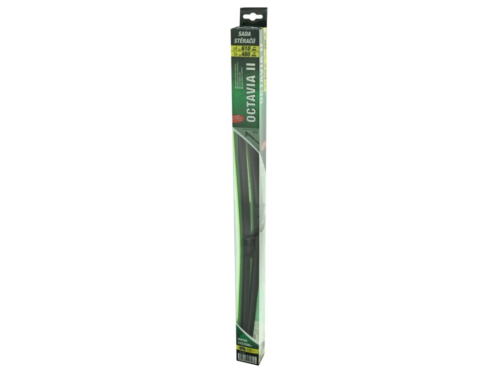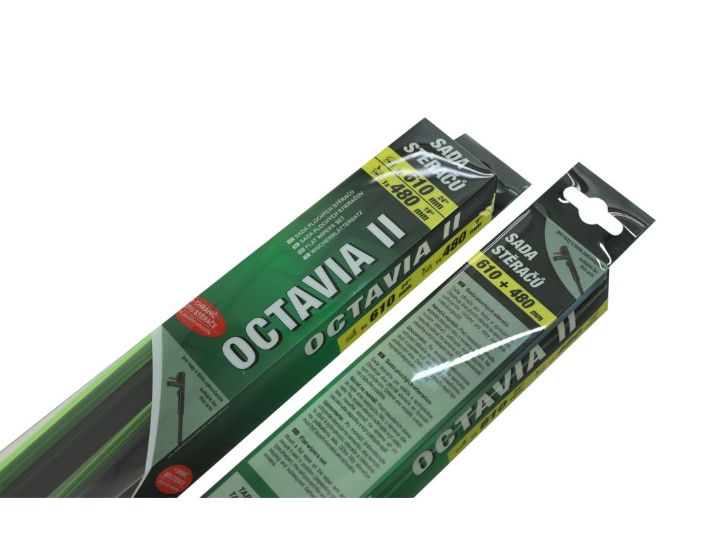 Tato sada stěračů je vhodná pro vozy Škoda OCTAVIA II, ale i další vozy (viz tabulka použití). Kvalitní pružný člen plochého stěrače zajišťuje stejnoměrný tlak grafitového břitu v celé jeho délce, což zamezuje rozmazávání nečistot a vytváření pruhů.