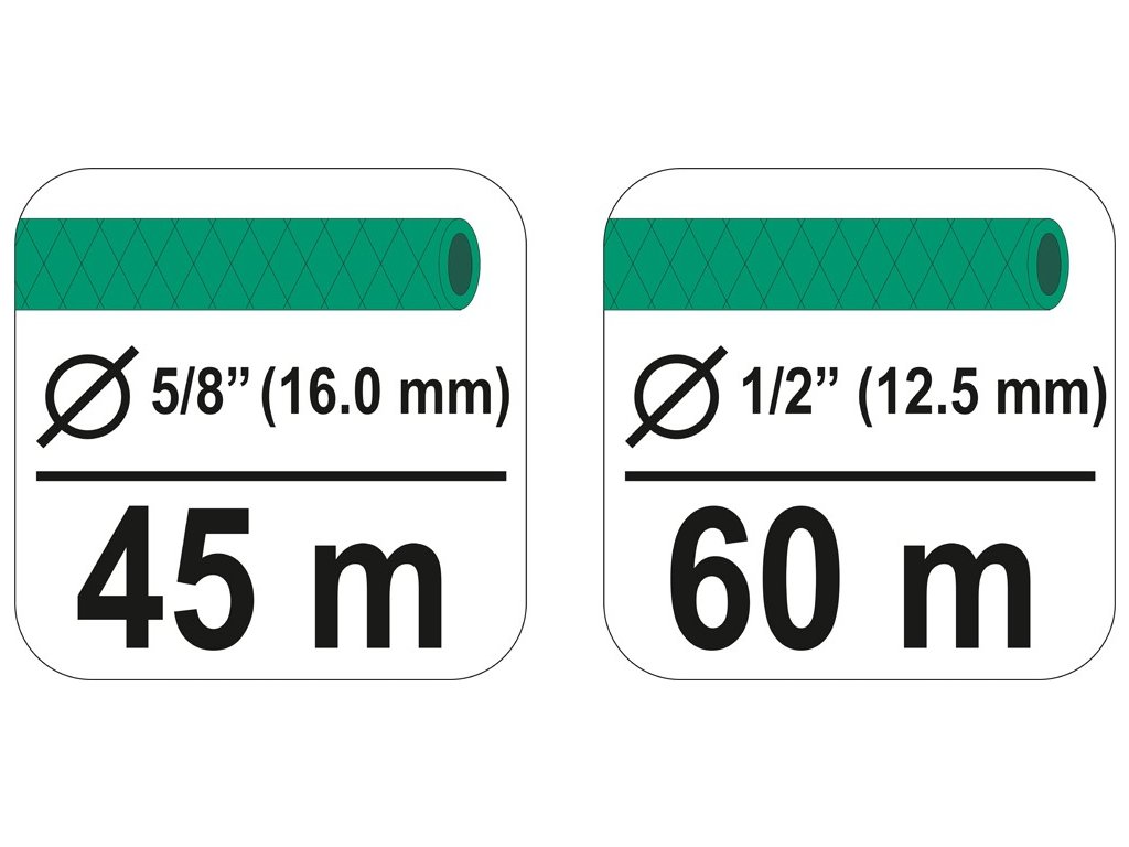 Stojan je vyroben z kvalitního plastu. Stabilitu stojanu poskytují nohy z ocelové trubky. Vhodné pro hadici 1/2 "o délce 60 metrů a 5/8" délky 45 m. Připojení na hadici 1/2" plastové koncovky