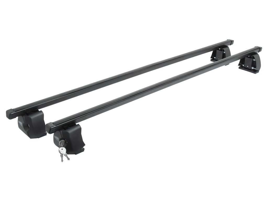 Uzamykatelný střešní nosič pro vybrané vozy. Kompletní sada nosič + patky, montáž na lem karoserie nad dveřmi. Masivní odolná konstrukce z kvalitní antikorozně pozinkované oceli s povrchovou úpravou, barva černá. Pozor, nosič není určen pro vozidla s podélníky (hágusy).