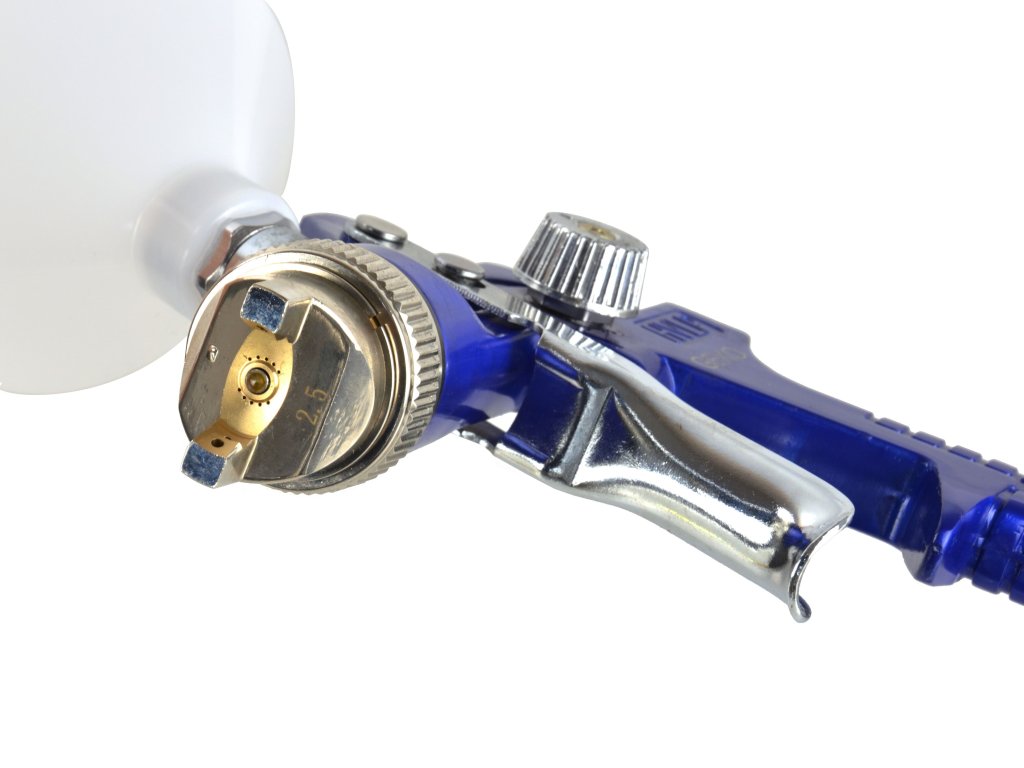 Moderní stříkací pistole v profesionální kvalitě, využívající technologii vzduchového stříkání HVLP (High Volume Low Pressure). Tento systém používá při práci větší množství vzduchu při menším tlaku. Výsledkem je vysoká účinnost a přesnost přenosu barvy. Pozitivním efektem je snížení spotřeby barvy proti klasickým typům – nanášení je hospodárnější a pracovní prostředí zdravější.