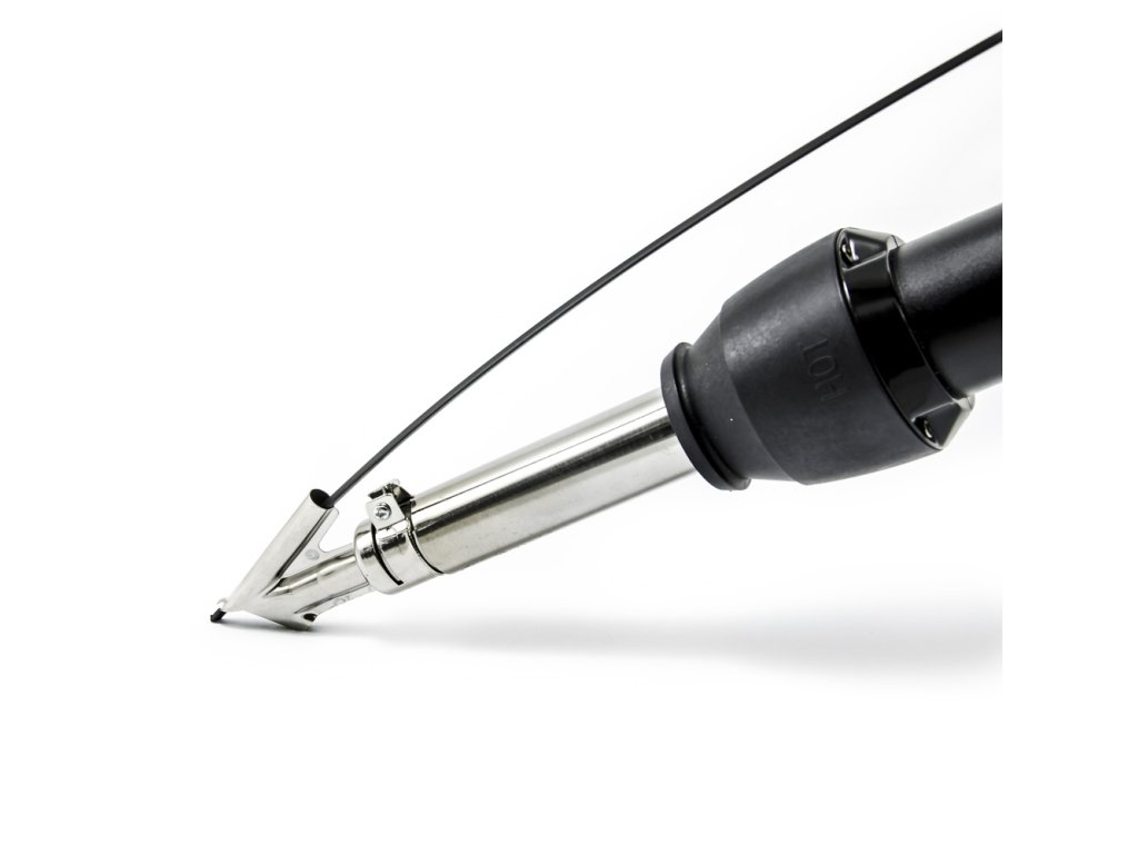 Svářečka taví svařovací drát společně se spojovaným materiálem. Pomalým tahem po spojovaném plastu tmelí spáru, která se po vytvrzení slepí.