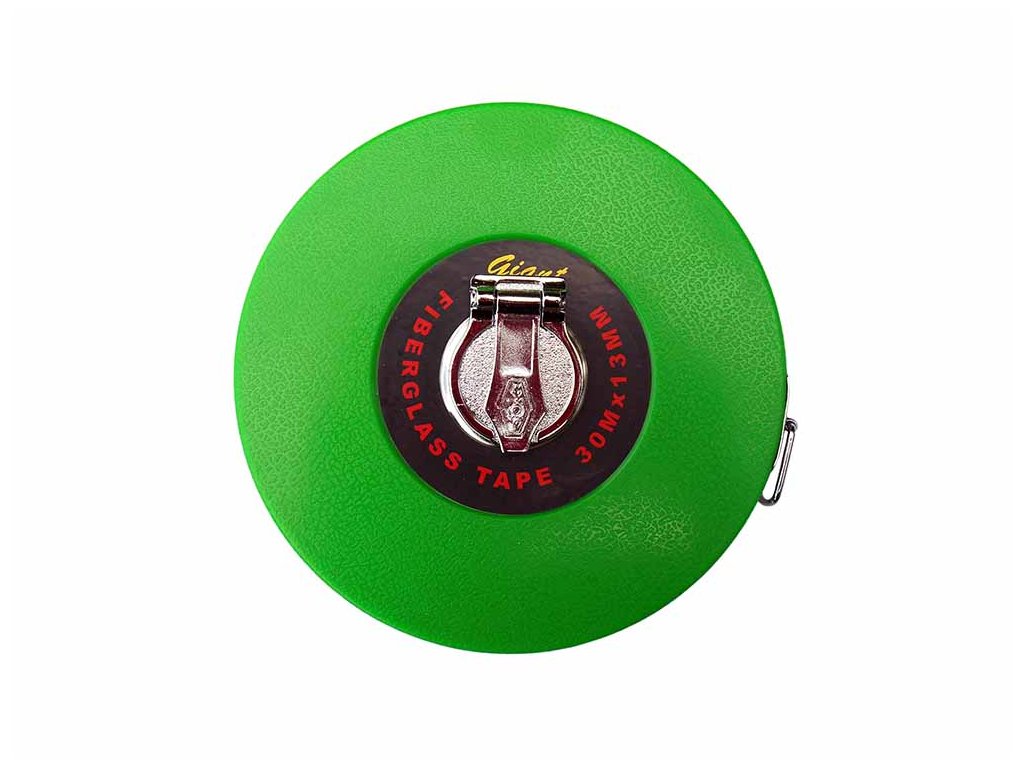 Svinovací pásmo (metr) délky 30 metrů, na měření velkých vzdáleností, s poutkem na přenášení a navíjecí kličkou.