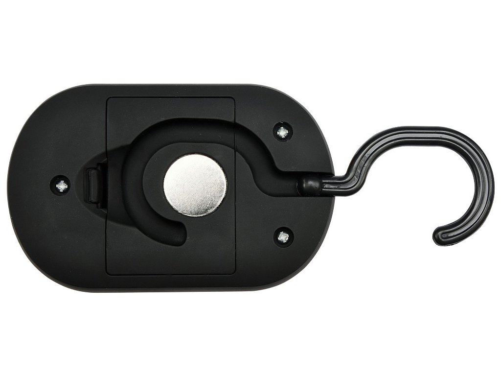 Napájení 3x AAA baterie (LR03, nejsou součástí balení). Svítilnu lze snadno upevnit vestavěným magnetem na zadní straně, nebo zavěsit na zabudovaný výklopný háček.