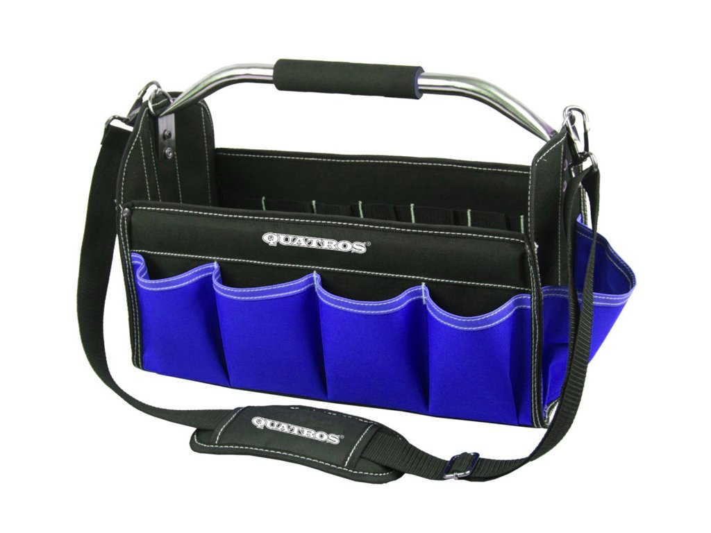 Brašna na přenášení a skladování nářadí, 40,5x30,19,5 cm, látková s hliníkovým rámem, s madlem a popruhem přes rameno, skládací – QUATROS QS51375A