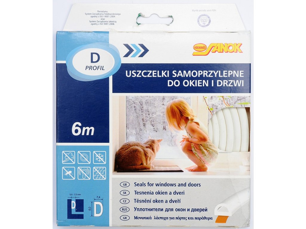 Těsnění do oken a dveří samolepící 9x7,4mm TYP D bílé 6M