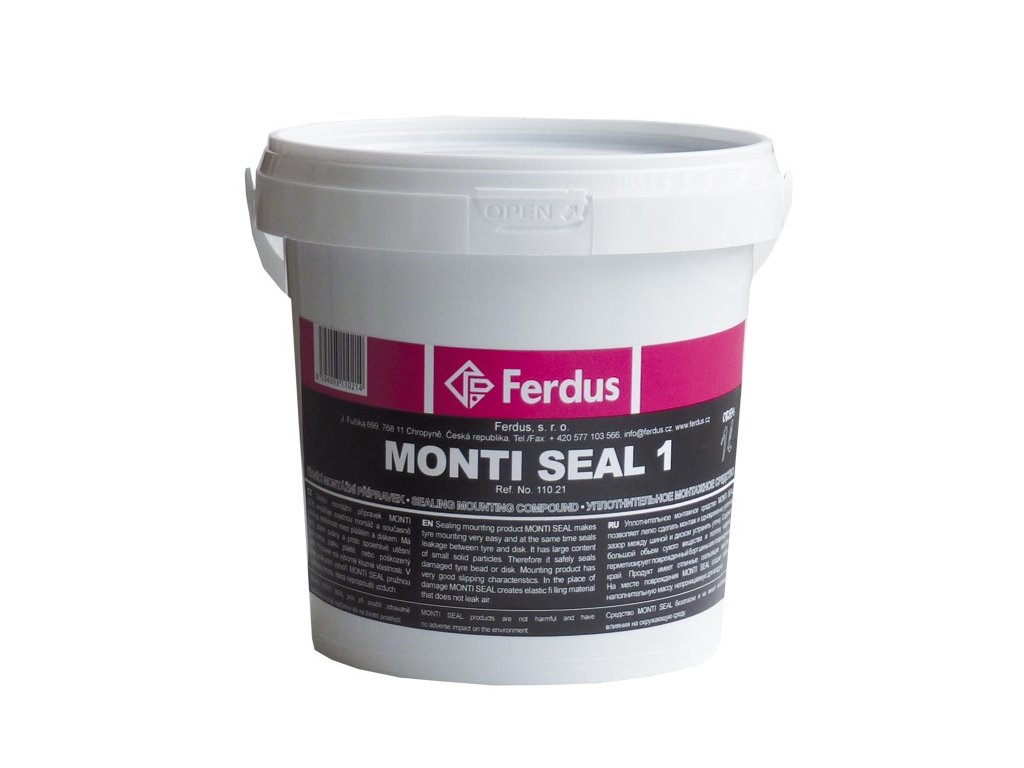 Těsnicí montážní přípravek, pasta MONTI SEAL značky Ferdus Balení objemu 1, 3 nebo 5 litrů Černá barva Konzistence: těsnicí pasta Umožňuje snadnou montáž a současně utěsňuje netěsnosti mezi pláštěm a diskem. Má velký objem sušiny, a proto spolehlivě utěsní poškozenou patku pláště, nebo poškozený ráfek. Přípravek má výborné kluzné vlastnosti. V místě poškození vytvoří těsnicí montážní pasta MONTI SEAL pružnou výplňovou hmotu, která nepropouští vzduch. K ráfku má nízkou adhezi, která umožní pozdější snadnou demontáž. Přípravek MONTI SEAL působí protikorozně, obsažené černé barvivo má krycí schopnost a po rozetření zlepšuje vzhled boku pláště. Těsnicí pasta MONTI SEAL lze použít pro montáž bezdušových plášťů všech typů a velikostí - od bezdušových plášťů jízdních kol, přes osobní, a nákladní až po traktorové a velké pneumatiky zemních strojů. Kvalitní montážní pasta pro pohodlnou, rychlou a efektivní práci.Doplňkové parametry