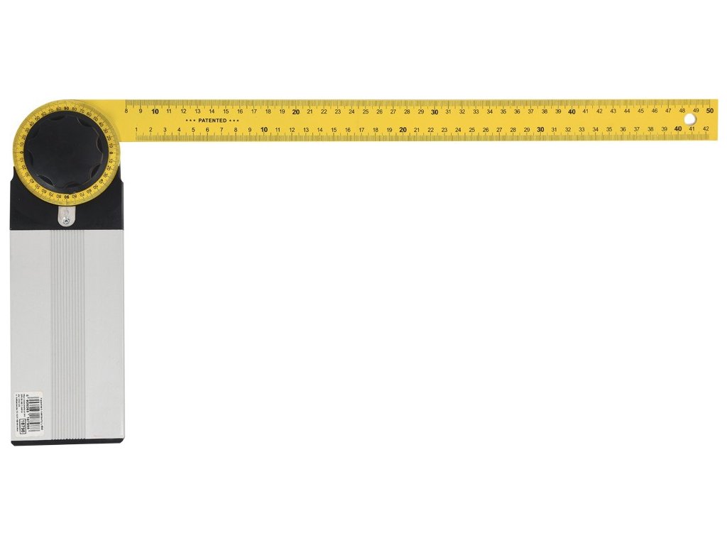 Kvalitní stavitelný úhelník s příložníkem pro měření a přenášení úhlů dřevěných a ocelových konstrukcí a podobně.
