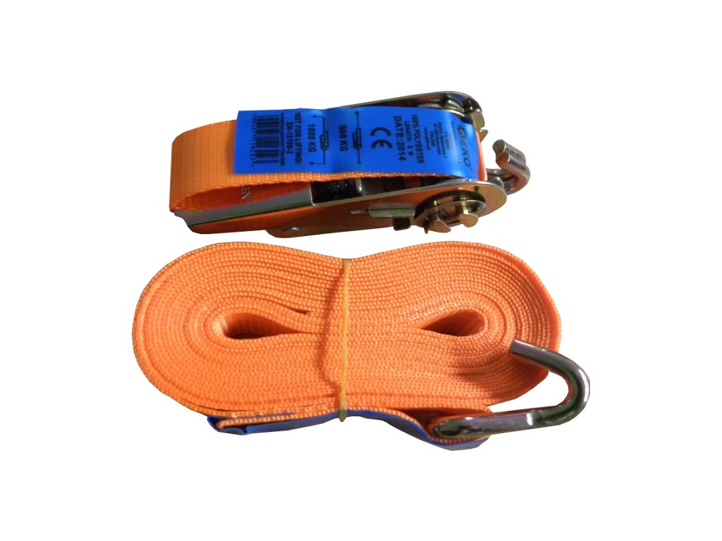 Pás upínací s ráčnou ,,kurtna" a s háky na obou koncích pro uchycení o celkové nosnosti 1 tun a délce 5 m. Pevnost pásu je 1000 kg při opásání a 500 kg v tahu. Šířka nabízené kurtny je 25mm.