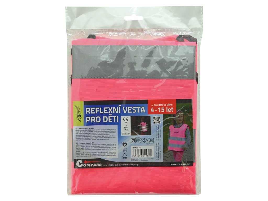 Výstražná reflexní vesta, dobře viditelná na velkou vzdálenost. Určeno pro děti ve věku 4 - 15 let.
