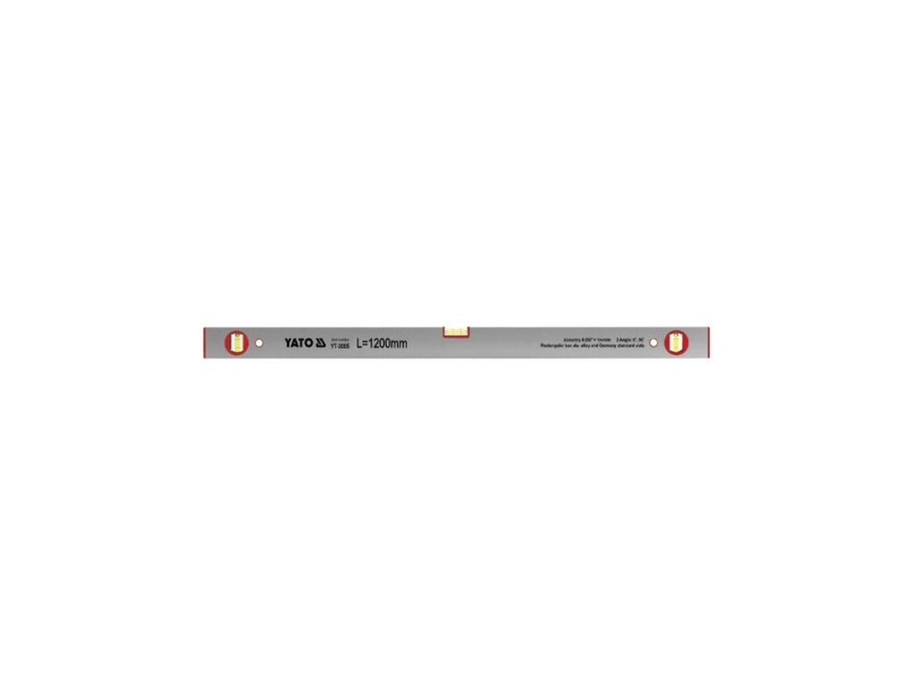 Vodováha se třemi libelami, celková délka 1200 mm, robustní profil, plastové koncovky, odolnost proti nárazu.