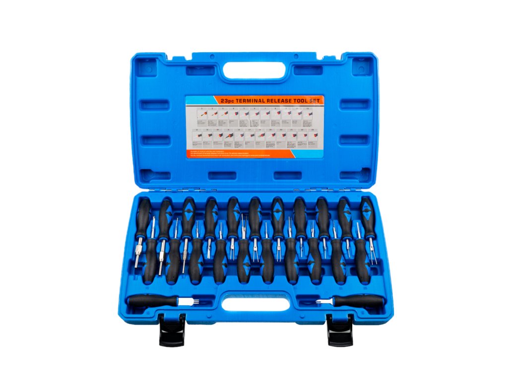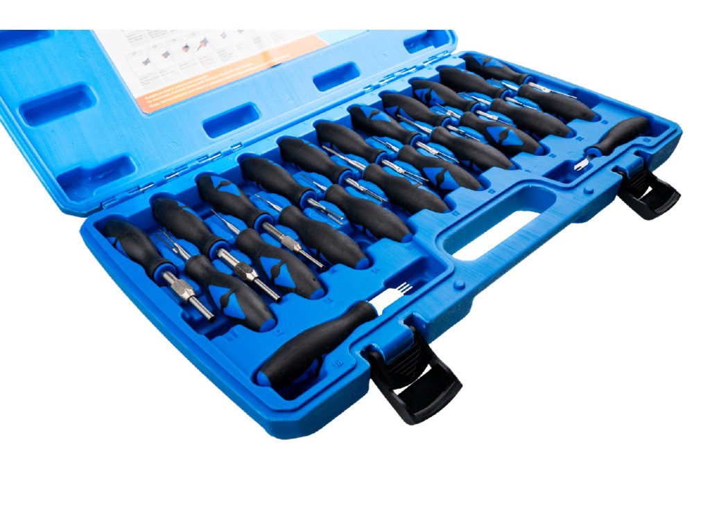 Sada vypichováků na demontáž konektorů v elektroinstalaci vozidla, 23 dílů v plastovém kufru – SATRA S-RS23X