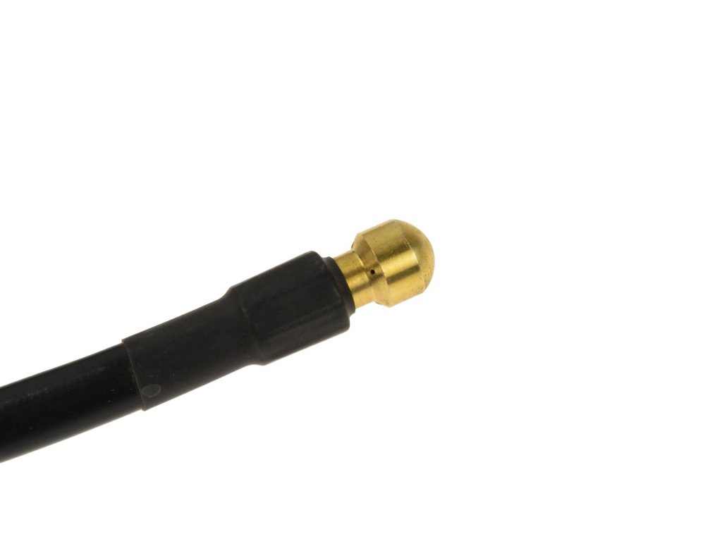 Účinný nástroj pro jednoduché čištění potrubí pomocí tlaku bez nutnosti použití čistících prostředků nebo chemikálií. Tlaková hadice je zakončená mosaznou koncovkou se čtyřmi otvory, které díky zpětnému tlaku usnadňují pohyb hadice vpřed.