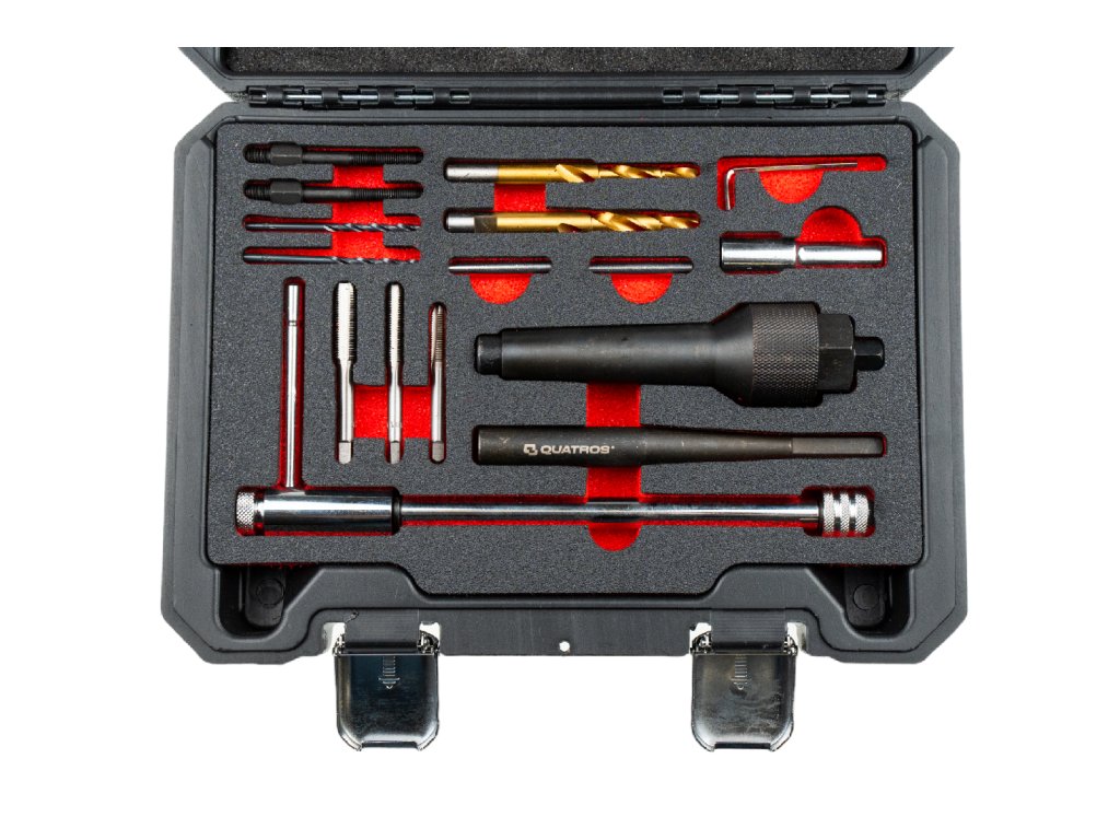 Přípravky na demontáž zalomených a poškozených žhavičů, 8 a 10 mm, sada v plastovém kufru, 16dílná sada – QUATROS QS20339