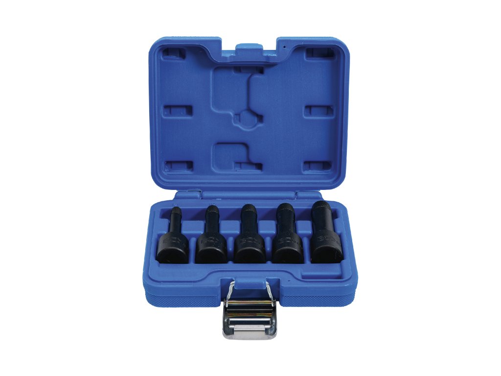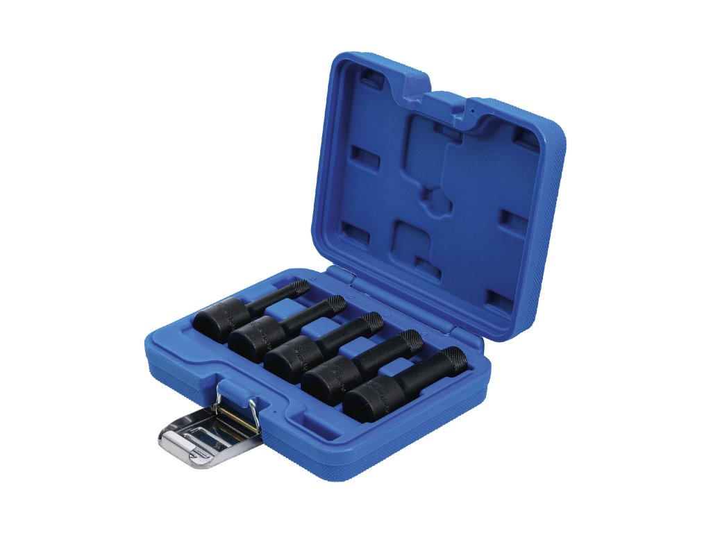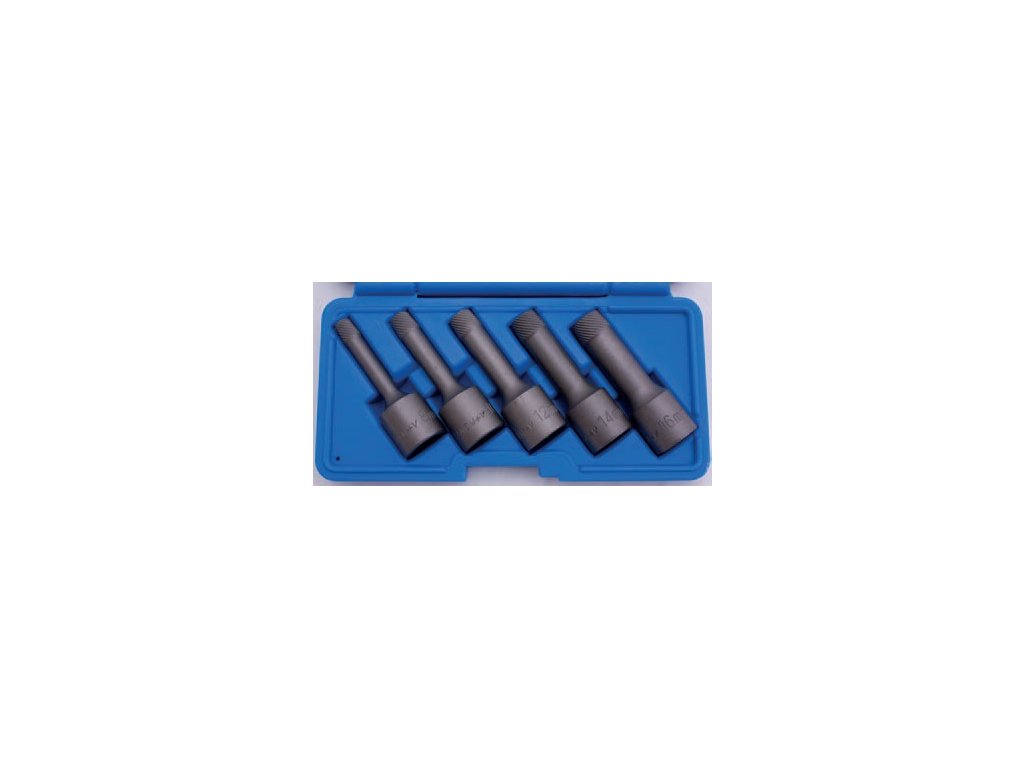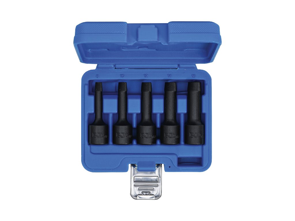 Hlavice „Twist“, vytahováky poškozených imbusových šroubů, vel. 8-16 mm, čtyřhran 1/2”, sada 5 ks v plastové krabičce – BGS 5261