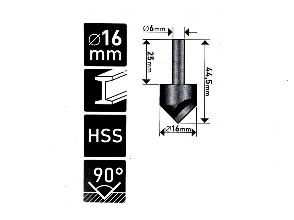 Záhlubník 90°, průměr 16 mm, pro vrtačku, HSS - EXTOL PREMIUM EX20045