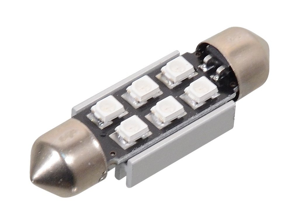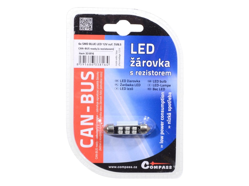 Žárovka 6 SMD LED 12V suf. SV8.5 38mm s rezistorem CAN-BUS modrá