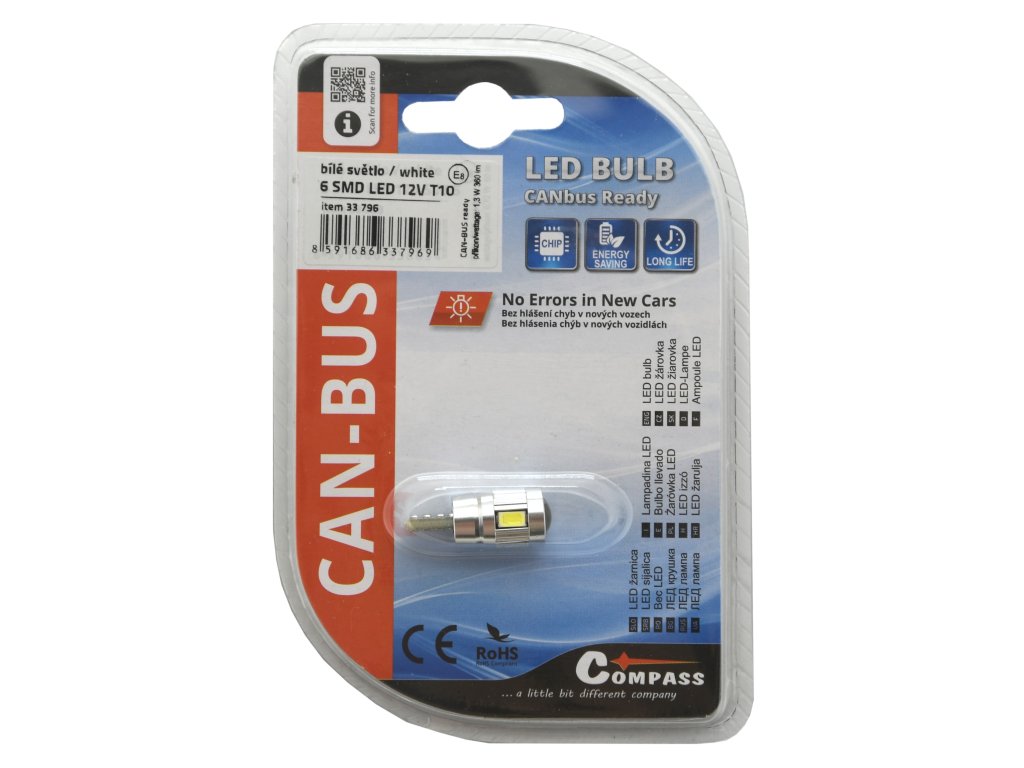 Žárovka 6 SMD LED 12V T10 s rezistorem CAN-BUS ready bílá
