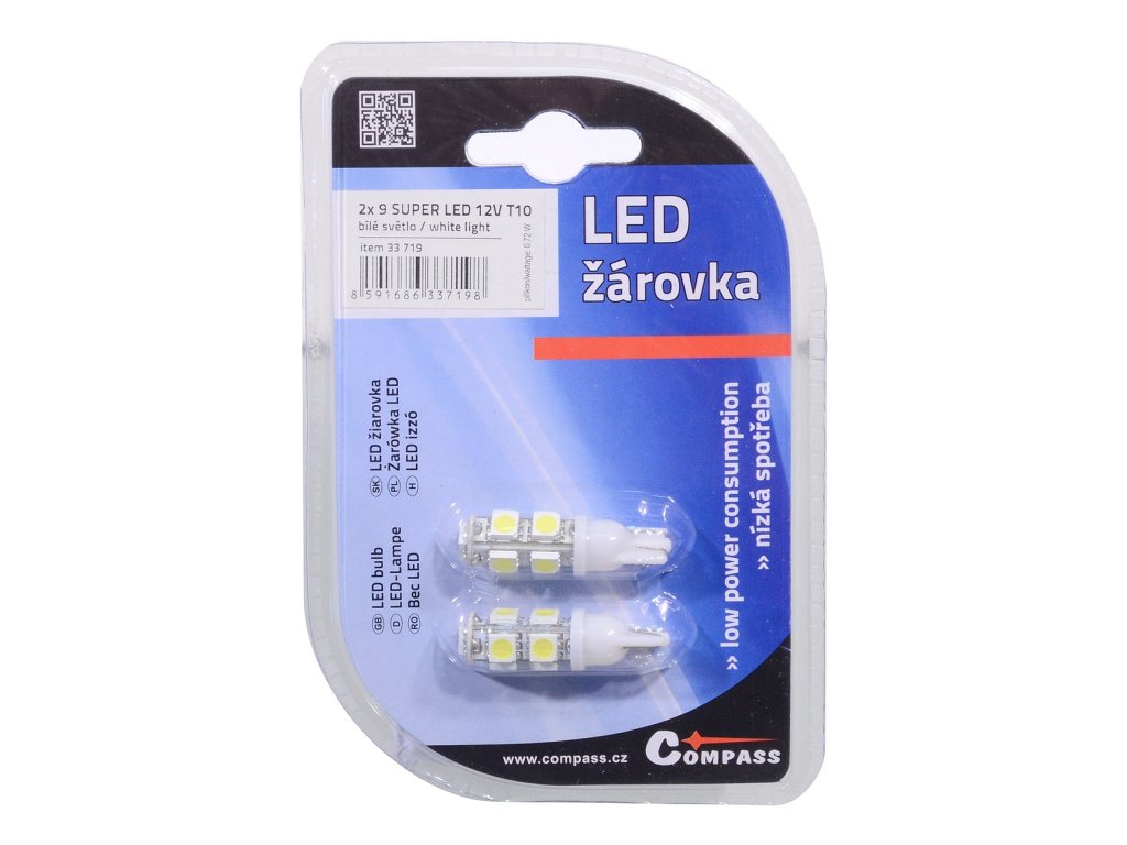 Žárovka 9 SUPER LED 12V T10 bílá 2ks