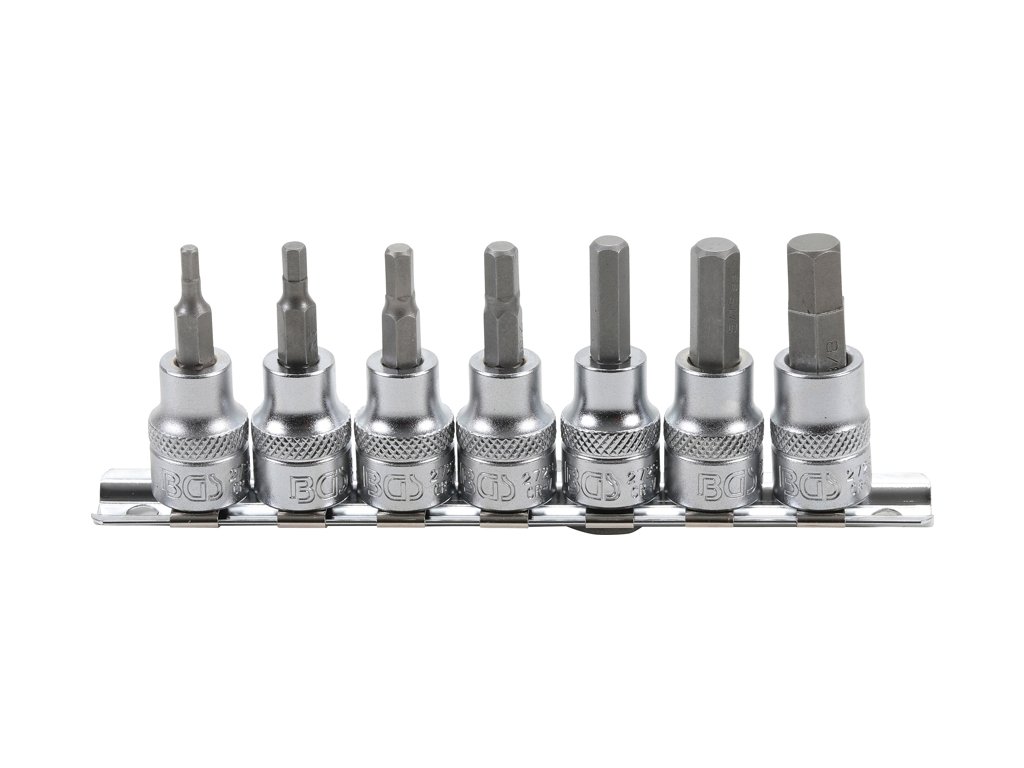 Zástrčné bitové hlavice profilu Imbus v palcových (coulových) rozměrech, vodicí hran 3/8“, sada 7 dílů na liště (kolejnici) - BGS technic 5104