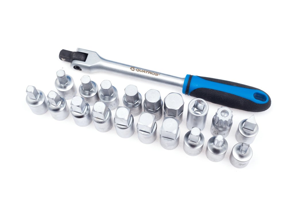 Zástrčné klíče na zátky olejových van, sada 20 kusů - QUATROS QS60019B