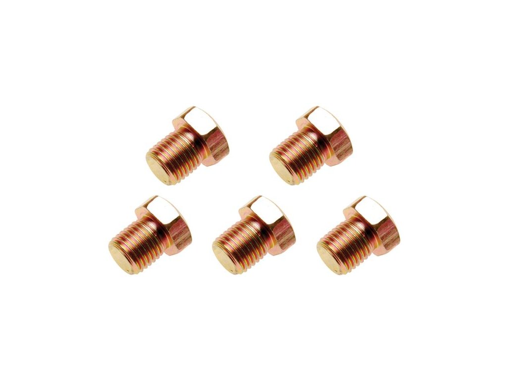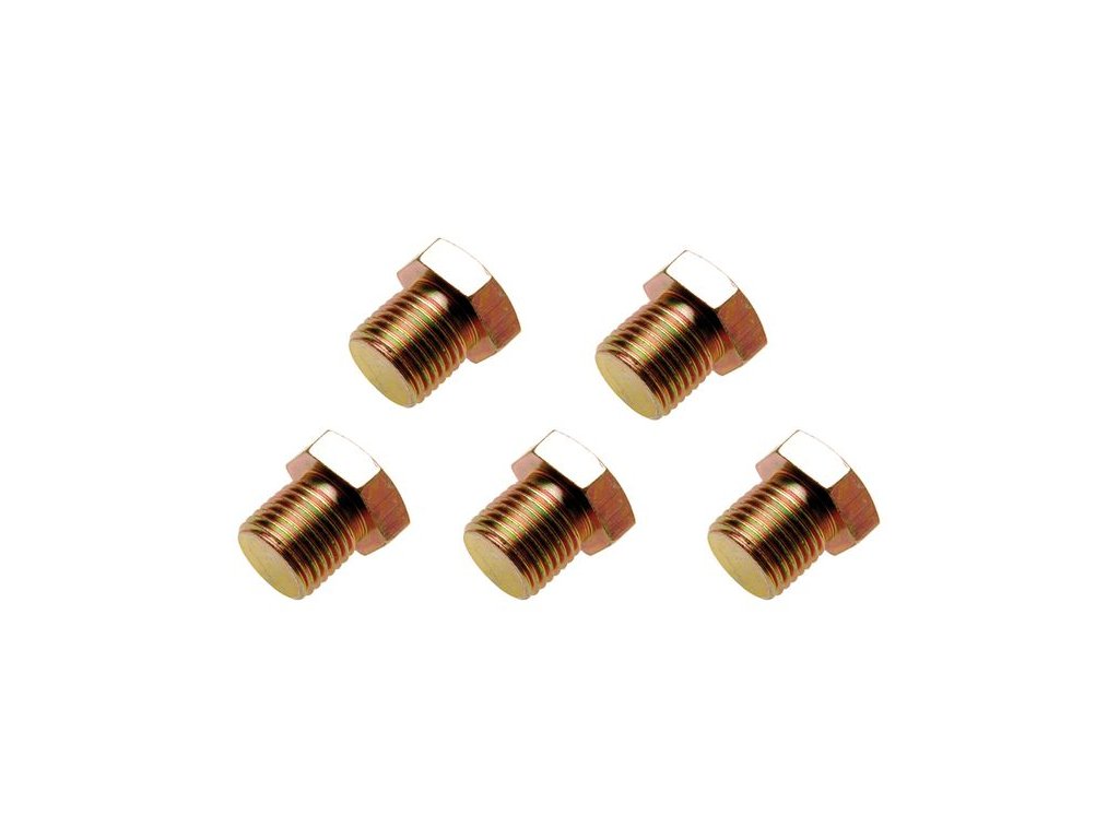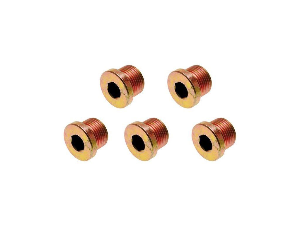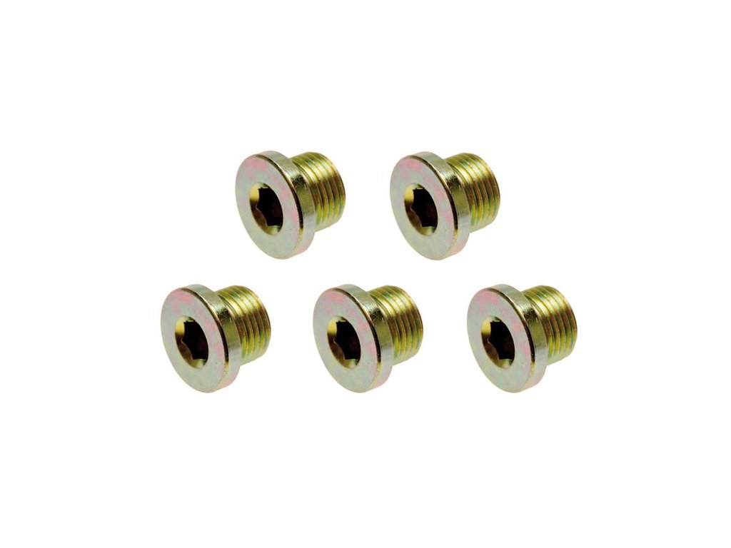 Praktická souprava šroubů uzavírajících výpusti olejových van. Vhodné pravidelně měnit – závity se časem opotřebovávají a zátka může začít protékat.
