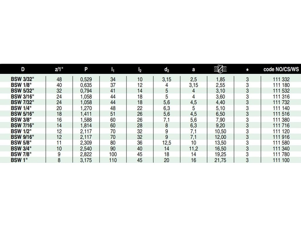 Závitníky sadové, pro palcové závity Whitworth BSW, norma PN 8/3011, sada 3 kusy – Bučovice Tools Závitořezné nářadí určené pro prořezání nových či regeneraci starších a opotřebených vnitřních závitů. Lícování: střední Materiál: NO Na výběr různé rozměry: vyberte si podle vašich potřeb. Vysvětlivky k tabulce (viz výše): z/1": počet zubů na 1 palec D: průměr P: stoupání l1: celková délka l2: pracovní délka d2: průměr stopky a: rozměr dříku - průměr vrtáku * : počet kusů v saděDoplňkové parametry