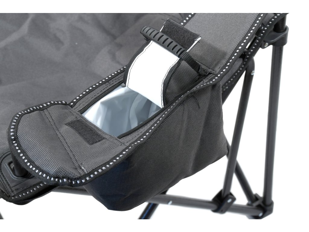 Křeslo ocení kdejaký outdoor nadšenec díky nabízenému pohodlí. Křeslo je opatřeno kvalitně sešitým potahem a polstrovanými rukojeťmi. Rukojeti jsou doplněny o držák na pití a praktickou brašnu na drobnosti.